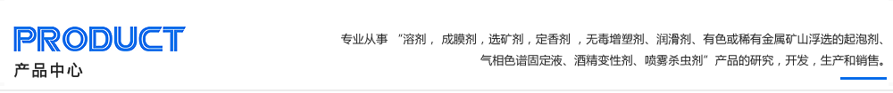 | ? 公司專業從事 “溶劑, 成膜劑,選礦劑,定香劑 ,無毒增塑劑、潤滑劑、有色或稀有金屬礦山浮選的起泡劑、氣相色譜固定液、酒精變性劑、噴霧殺蟲劑”產品的研究,開發(fā),生產和銷售。 |